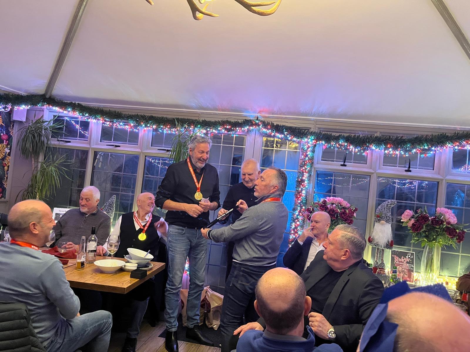 With cause for celebration, we held our annual Christmas Dinner and Presentation evening last December with the cup and winners medals presented to our glorious 50’s team and Player of The Year 2024 trophies awarded to winners Pat Fahy and Simon Moore for the early and late sessions respectively. Golden whistles were also awarded to our Monday night referees; Richard Ward and Dennis Mitchell in recognition of their efforts and helping us adhere to the strict Walking Football rules.